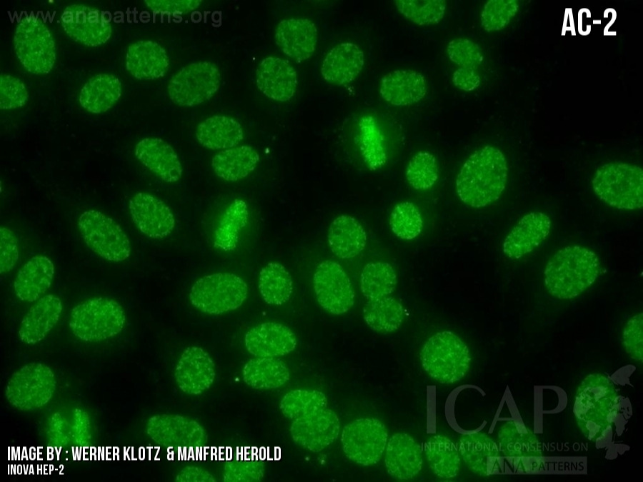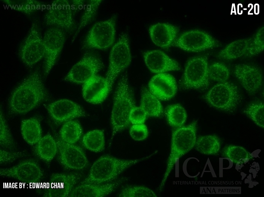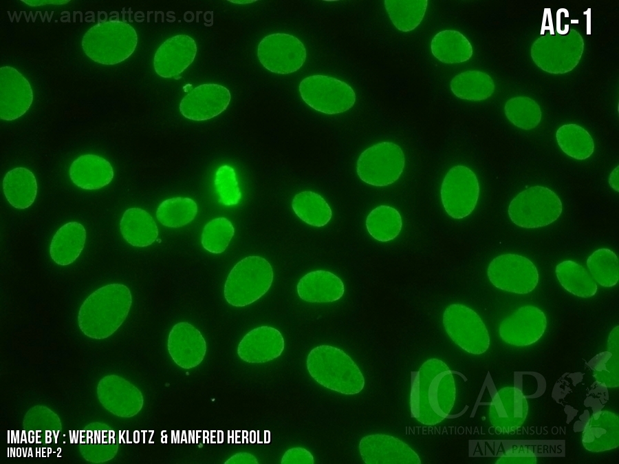 DFS pattern from ANA Patterns. Dense fine speckled pattern is strongly associated with a false positive ANA and usually not found with autoimmune disease like lupus, scleroderma or Sjogren syndrome.